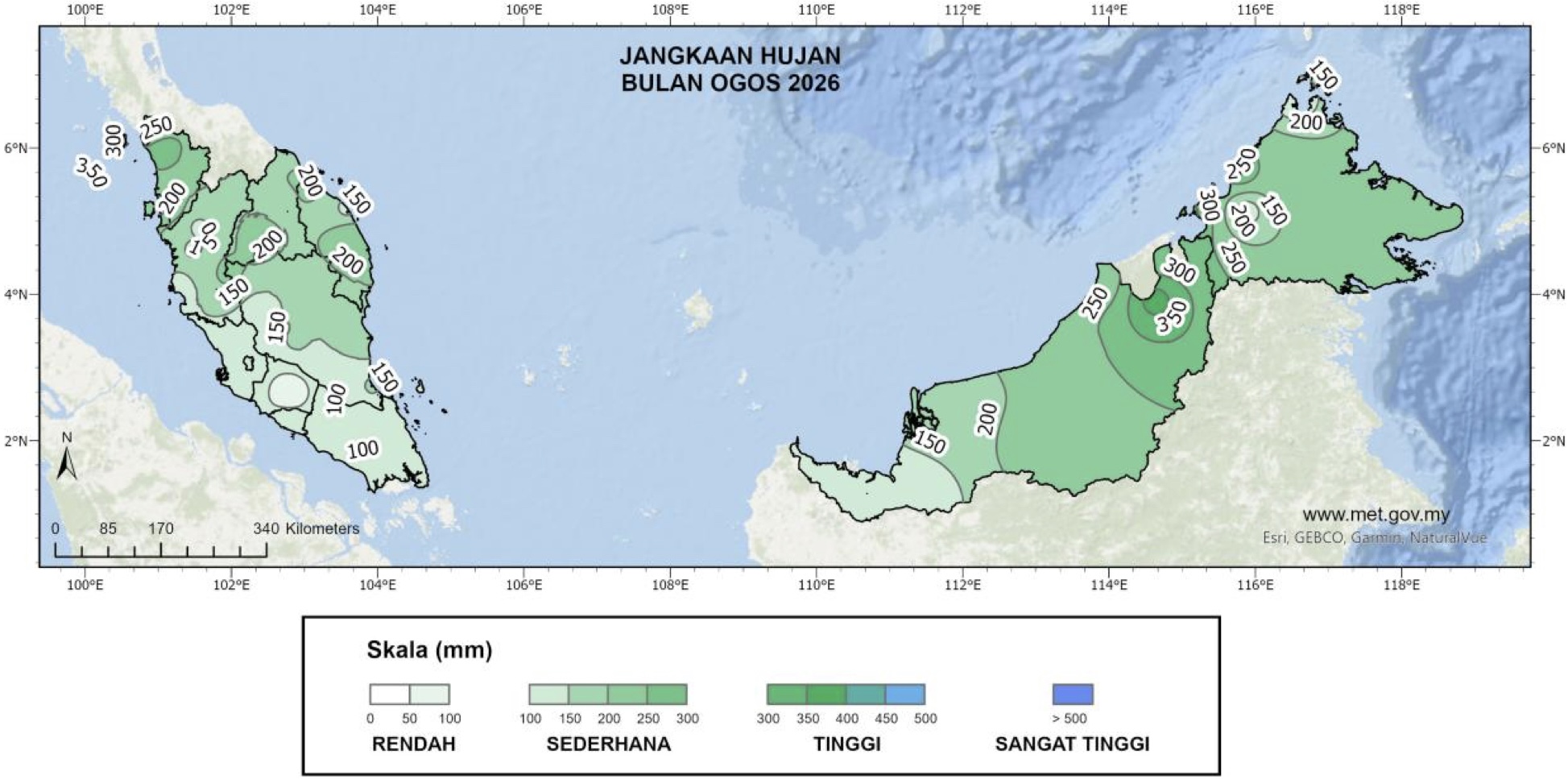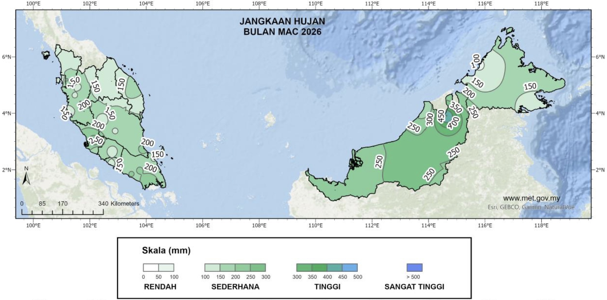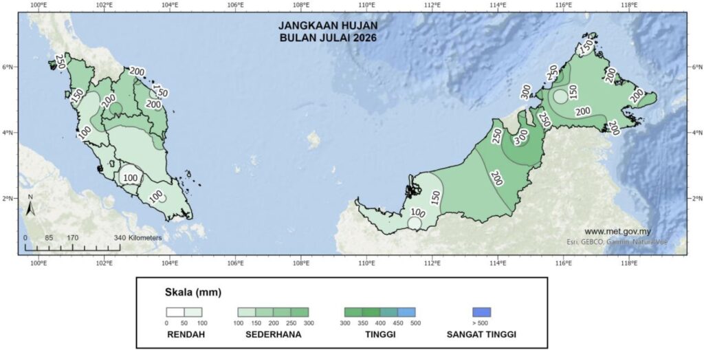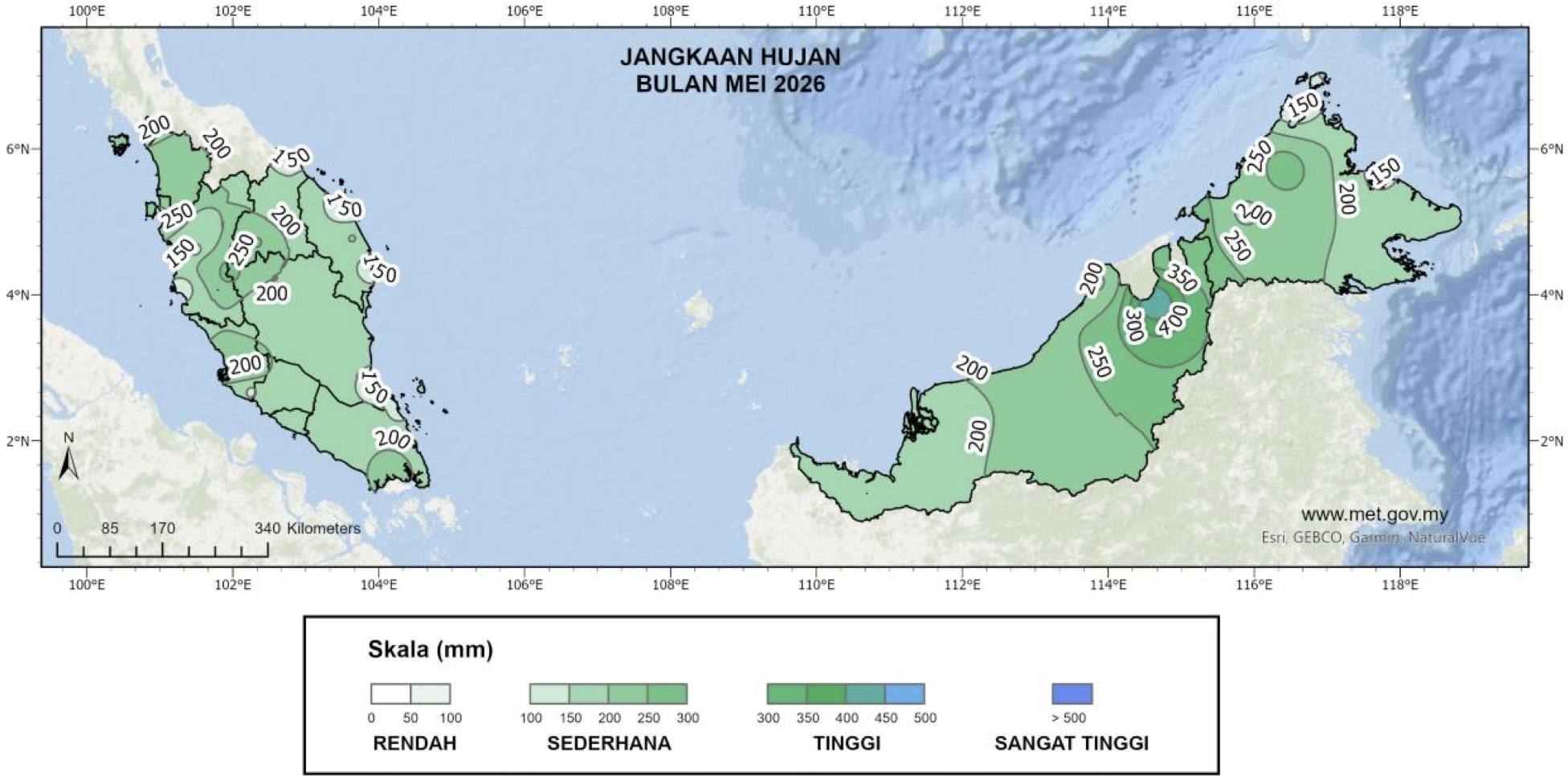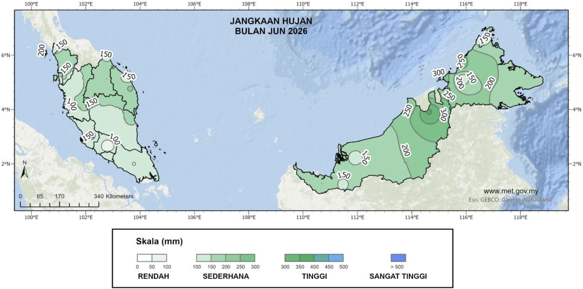 サラワク州、九州、マラッカ州、ジョホール州では2026年6月以降、セランゴール州、KL、プトラジャヤでは7月以降、継続的な降雨量の減少が予想されており、乾燥による火災に注意してください。同期間には、野焼きによるヘイズ (煙害) の発生も予想されます。